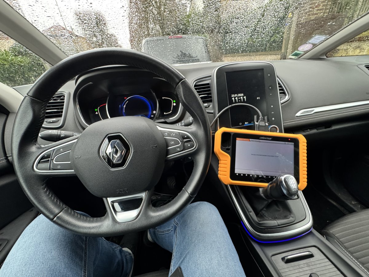 Perte de carte sur Renault Scenic 4 de 2019. Le client avait encore une carte fonctionnelle et souhaitait un double. Programmation d'une nouvelle carte main libre avec toutes les fonctions : ouverture mains libres, démarrage au bouton. Prix moins cher qu'en concession Renault.